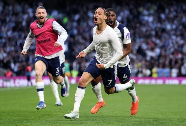 下半场,哈维-西蒙斯在第77分钟打进一记世界波,帮助热刺再度取得领先,在进球后,哈维-西蒙斯兴奋地脱衣庆祝,结果在下半场补时阶段,丹索失误被抢断,吕特打进绝平球。