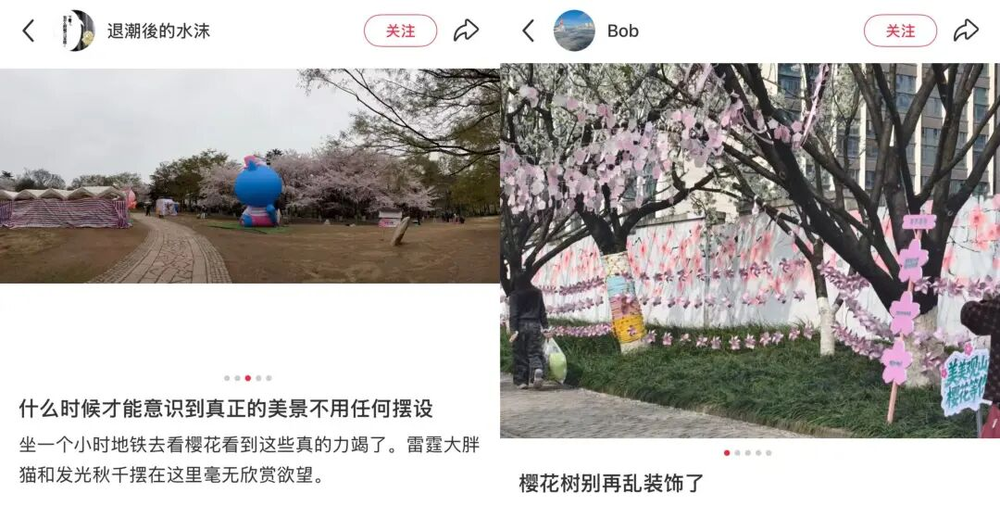 本应服务于花朵的布景,有时反倒成了最煞风景的“视觉污染”,看得大家提不起静心赏花的兴致。