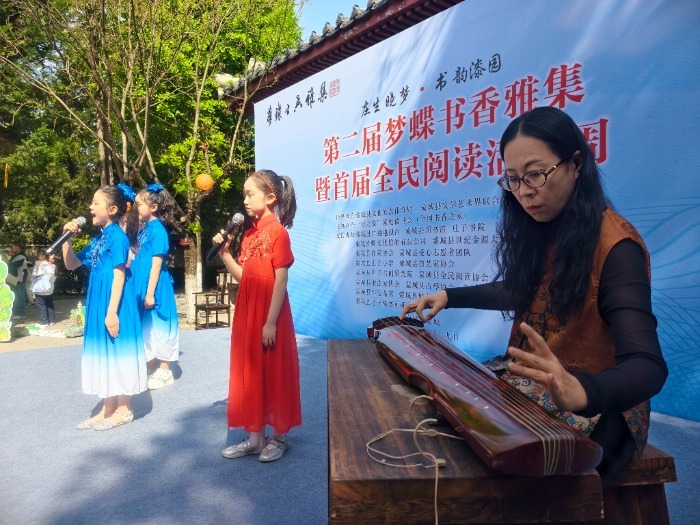 活动现场精彩纷呈,融合朗诵、古琴、曲艺、书画、养生功等多元传统文化形式,为市民奉上沉浸式文化体验。童声朗诵《蒙城三字经》率先登场,用稚嫩语调传递家乡深厚文脉;现代诗朗诵《我是中国人》铿锵有力,抒发真挚拳拳爱国情怀;坠子表演《庄周梦蝶》、古琴伴诵《张襄七律四首》,将传统曲艺与诗词古韵精妙融合,尽显庄子故里的独特文化底蕴。除此之外,少儿评书、情景剧、诗歌联诵等节目轮番上演,文化访谈环节深入挖掘本土文化故事,女声独唱唱响涡河畔家国情怀,庄子养生功展演搭配茶艺、书艺展示,全方位展现了传统文化的多元魅力。