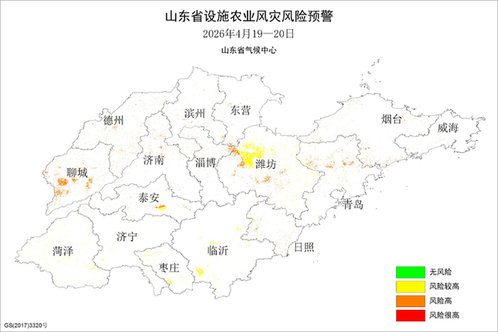 4月19日—20日山东省设施农业风灾风险预警图
