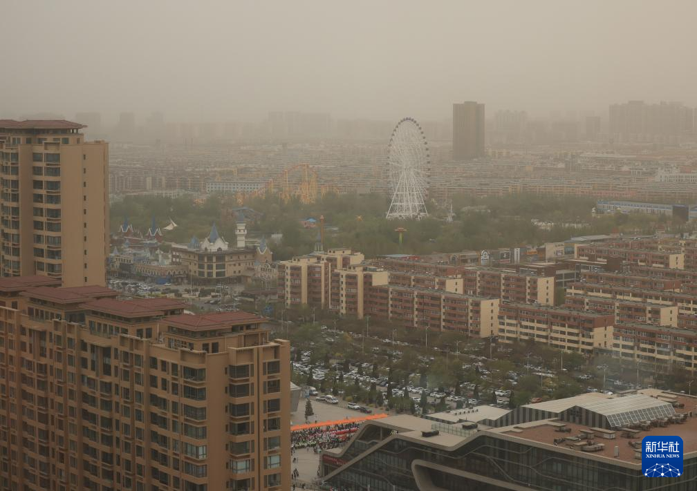 4月19日,内蒙古包头市出现沙尘天气。新华社记者 贾立君 摄