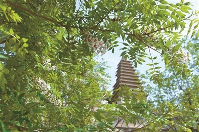 如今,这座古刹格局仍保存完整,被列为西城区重点文物保护单位。当年那块镌刻着康熙御制诗的碑石,完好留存至今,现藏于北京石刻艺术博物馆。每至春日,五塔巍峨、古柏苍翠,文光果树花开渐盛,从白到绿、再到红紫,宛如古代官员的品秩变迁,诗碑静静矗立在繁花之中,与满园春色相映成趣。