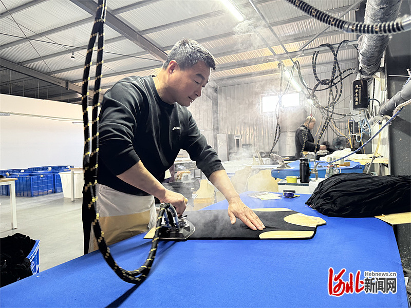 3月12日,清河县兴利智能针织共享工厂生产车间,工人在熨烫半成品。 河北日报记者 常方圆摄