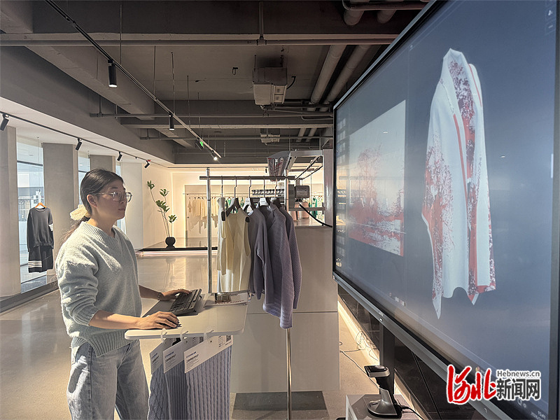 3月12日,新华·事坦格羊绒一线成型研究院,设计人员利用智能系统进行AI创款。 河北日报记者 常方圆摄