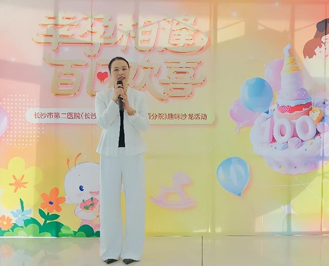 长沙市第二医院(长沙市妇幼保健院河西分院)产科黄利辉主任向首批百日宝宝家庭及到场孕产妇致以诚挚欢迎与美好祝福。她表示,这100名宝宝的平安降生,是医院孕产服务能力的最好见证,也开启了医院守护新生命的温暖征程。