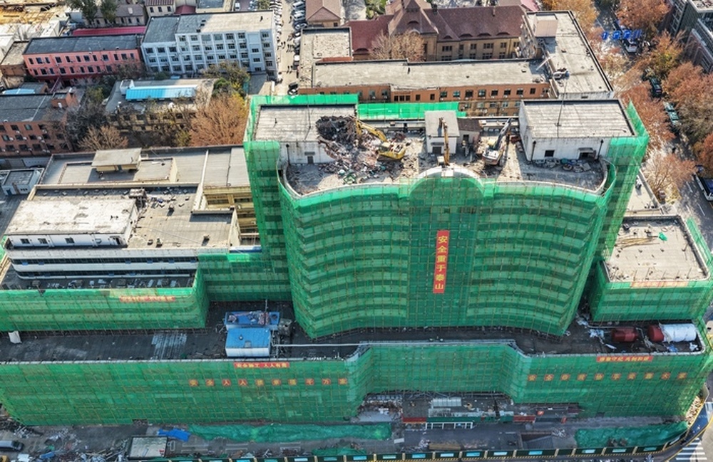 △2025年12月2日,天龙大厦拆除工作进行中。先前,11月18日、27日先后两次组织大型起重机吊装三台挖掘机及相关设备至主楼楼顶,全面启动这一标志性建筑的整体拆除施工,拆除采用“自上而下”方式。