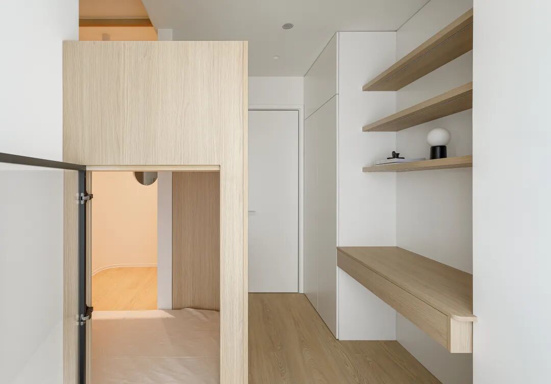 设计师利用2.9米的层高优势,通过横向和纵向的空间重塑,把次卧一分为二,为两个孩子打造了相互独立的的叠屋。