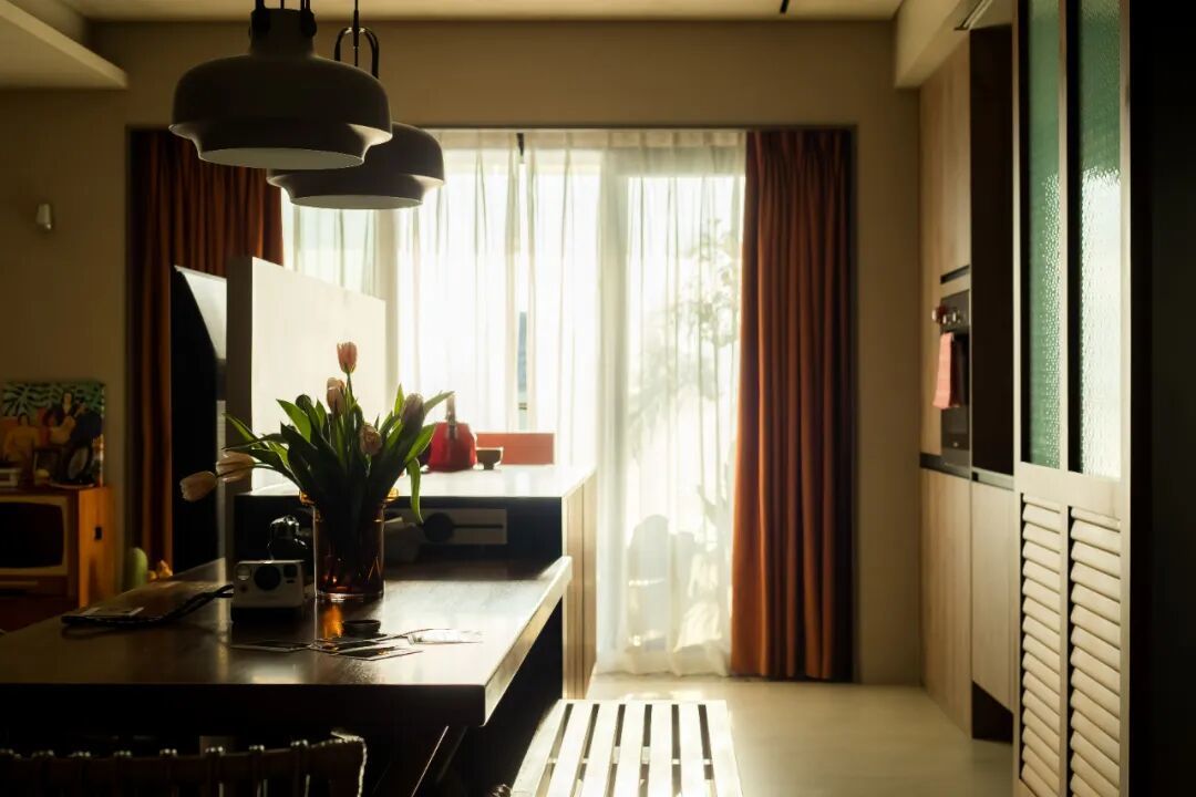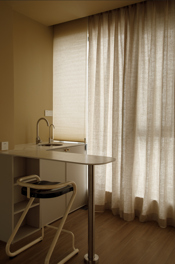 原来的客厅区域释放出来之后,添置了年轻人喜爱的岛台餐桌,既是平时的餐桌,也可用作厨房的拓展,尤其适合爱涮火锅的他们。