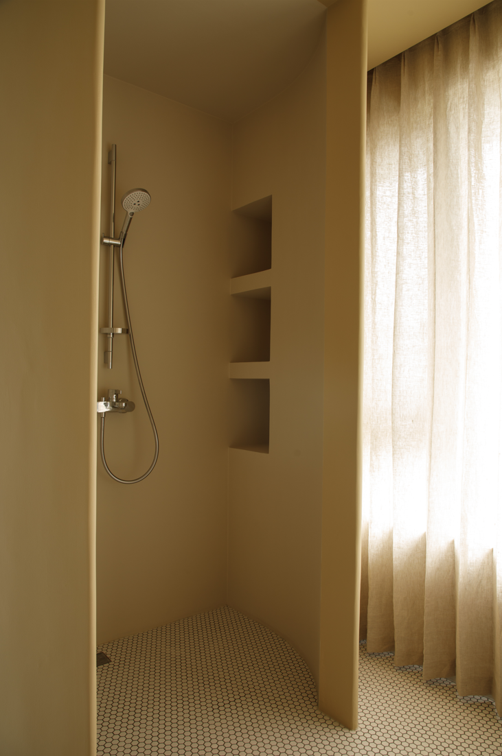原来的客卫只剩一个马桶和洗手池,缩短了生活半径,屋主深夜创作也不必担心打扰其他人休息。