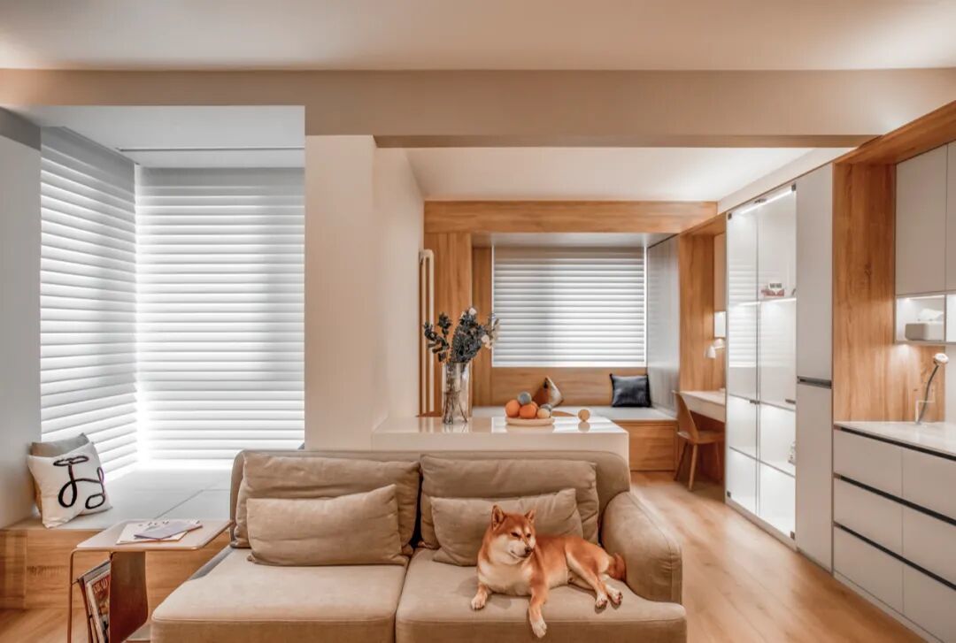 这对北京的丁克夫妻,在充分考虑居住需求后,他们决定放弃小次卧,改为开放式的多功能空间,并入使用频率较高的客厅,作为公共区域的有效扩充。
