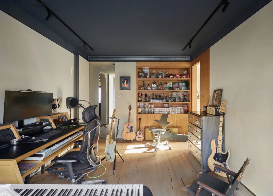 这个北京文艺青年的家,不但没有让小次卧闲置,反而把部分客卫的面积也收了进来,打造成专属的音乐房。