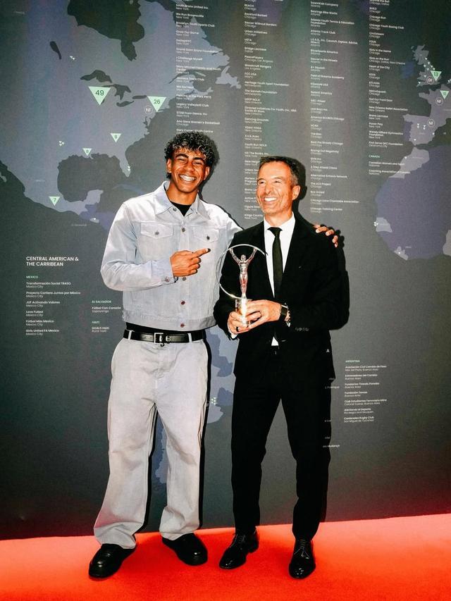 当地时间4月20日,2026年劳伦斯世界体育奖颁奖典礼在马德里举行。18岁的巴萨球星拉明-亚马尔获得了劳伦斯年度最佳青年运动员奖。随后,亚马尔也在社媒晒出了自己参加颁奖典礼的照片,分享喜悦。