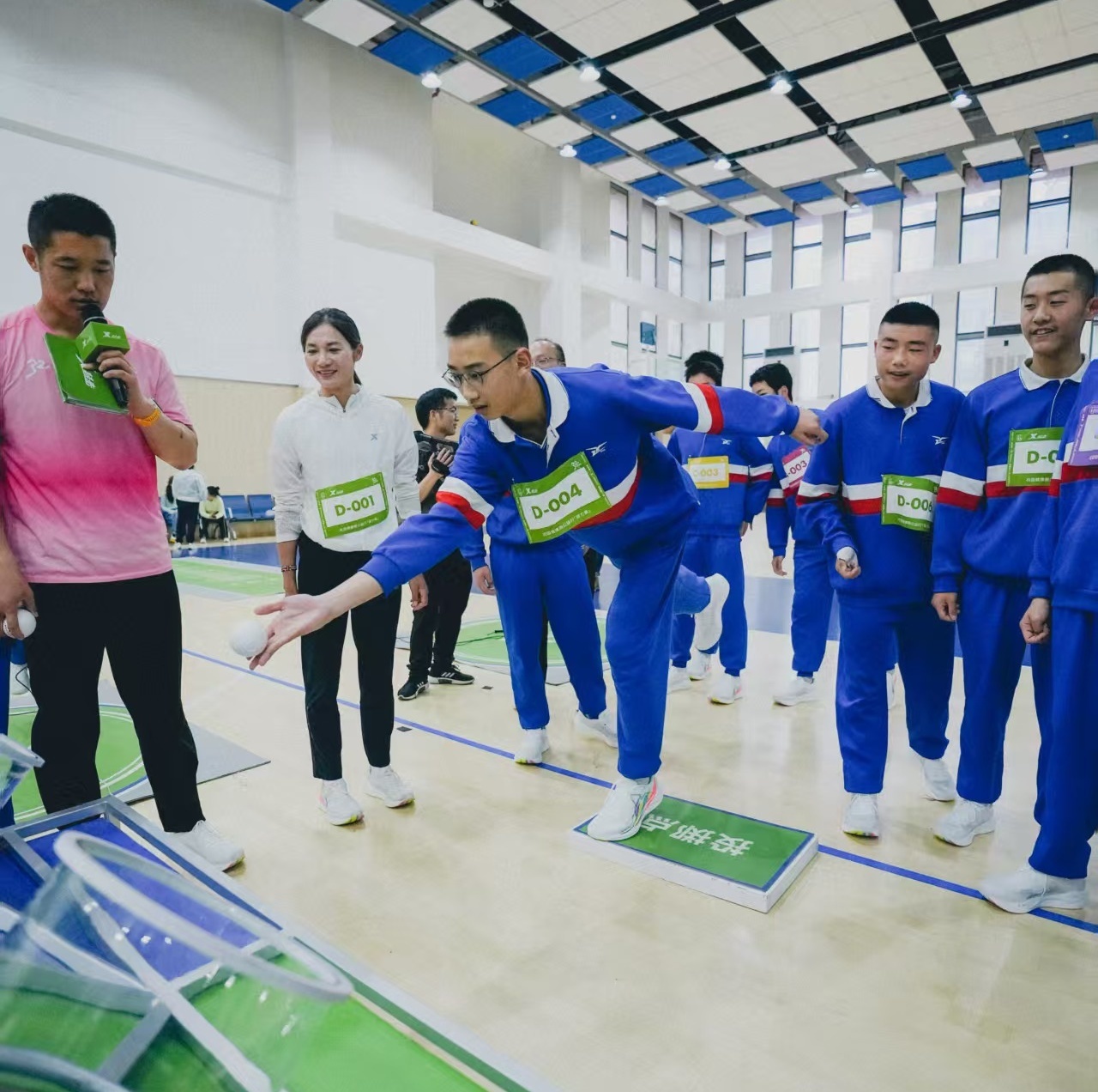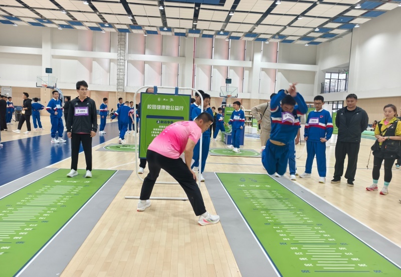 在折返冲刺跑中,一人比拼、全员加油,身着校服的同学们在比赛区域快出蓝色幻影。挑战精准投球,同学们在一次次失误中不断总结经验,调整投球的力度与角度,每当弹力球精准入筐,现场都是一阵欢呼。随后的活力跳绳、和立定跳远比拼中,每支队伍都派出实力战将,让这场师生同台比拼既充满竞技趣味,也洋溢着欢声笑语。