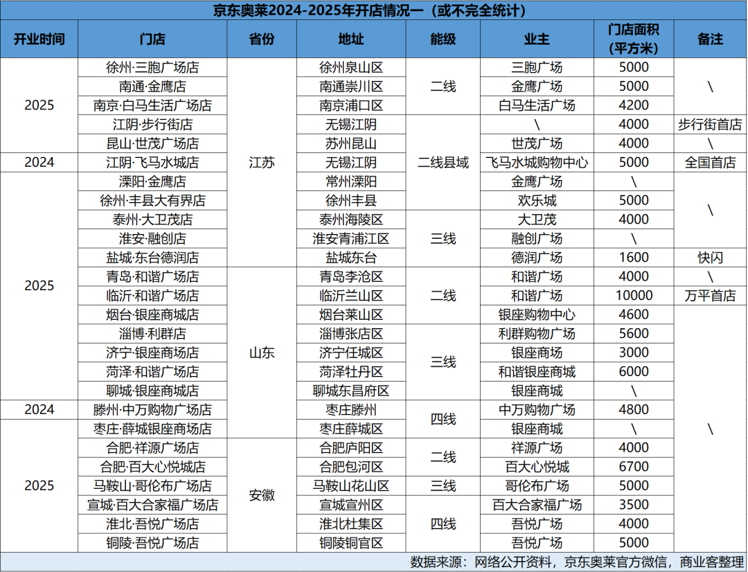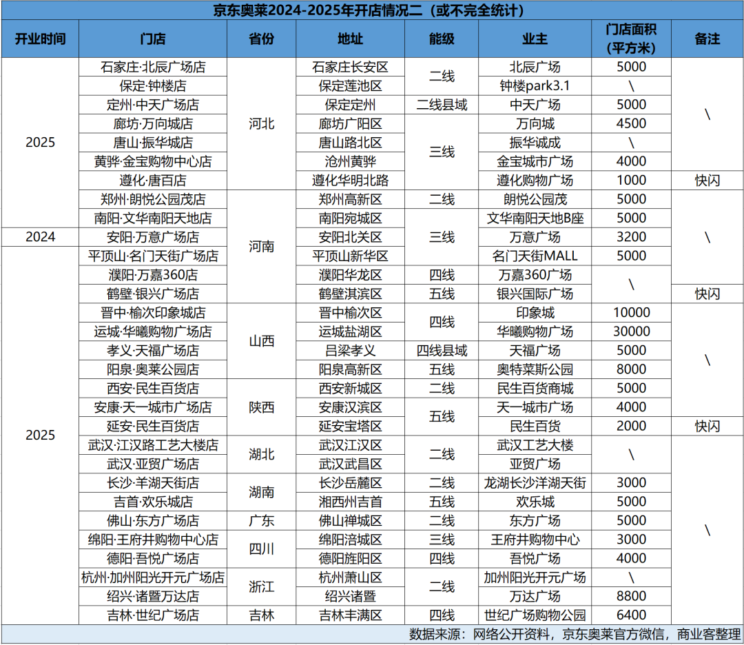2025年开业超50家门店,京东奥莱的全国化布局力度未见减弱迹象。