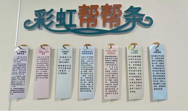 科室集体讨论后,设计了“彩虹帮帮条”——不同颜色对应不同事项:红色为术前准备、蓝色为术后注意、绿色为入院检查等。每张彩条简短列出核心要点,患者随手可取。护士忙碌时,递上一张对应彩条,配合一两句讲解,患者一看就懂。