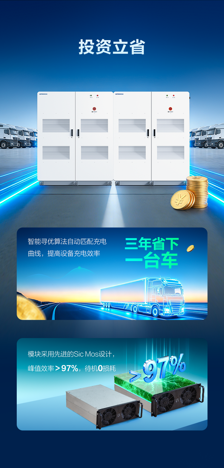 ①智能寻优算法自动匹配充电曲线,提高设备充电效率,三年省下一台车