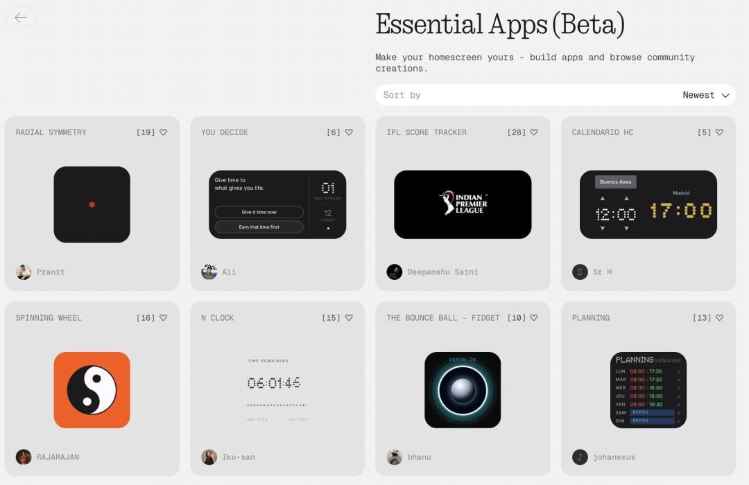 我们看到的一个比较有意思的探索是手机厂商Nothing推出的Essential Apps。用户可以围绕自己的使用习惯、日常需求快速创建今日穿搭推荐、首屏展示小组件等应用。然后用户还可以将自己创建的Essential App发布到Nothing的Playground平台上,让其他用户来发现和下载。