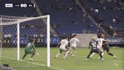 第43分钟,扳平比分,道胁丰头球破门,福冈黄蜂1-1