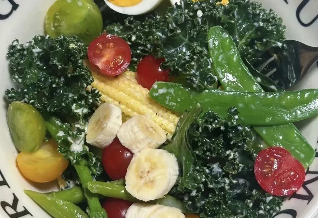 第二是把羽衣甘蓝作为沙拉配菜。生吃的味道又苦又涩像极爱情,必须加入大量调味品。