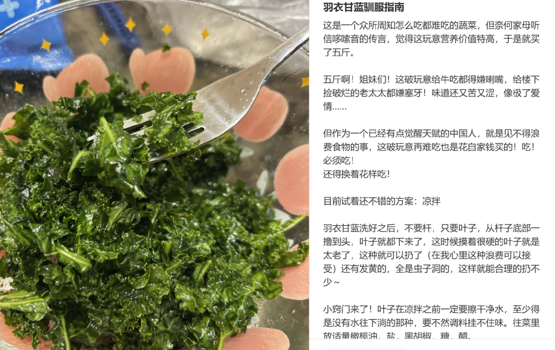 羽衣甘蓝“超级食物”的title,乘着健康风潮风靡全球。