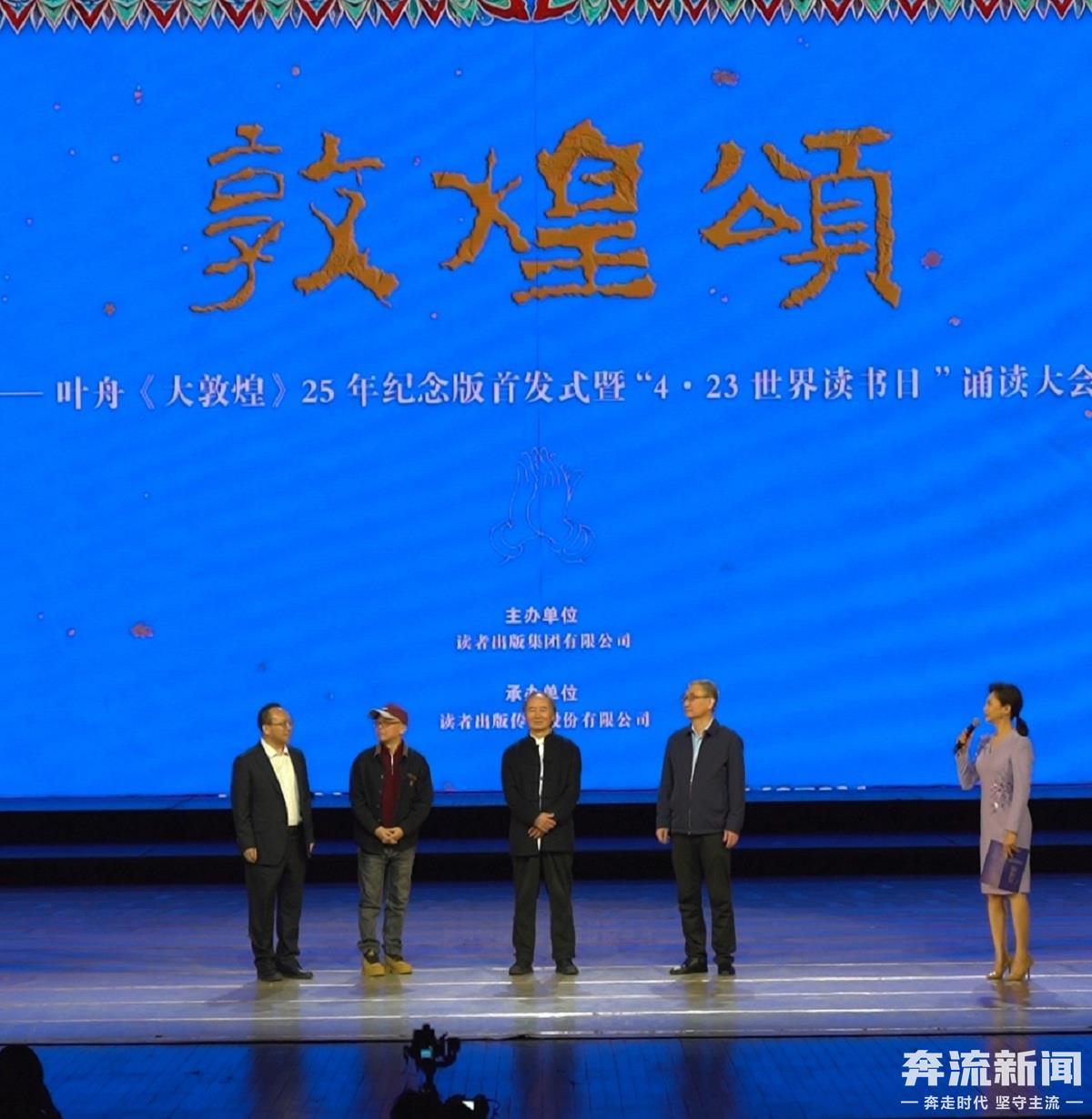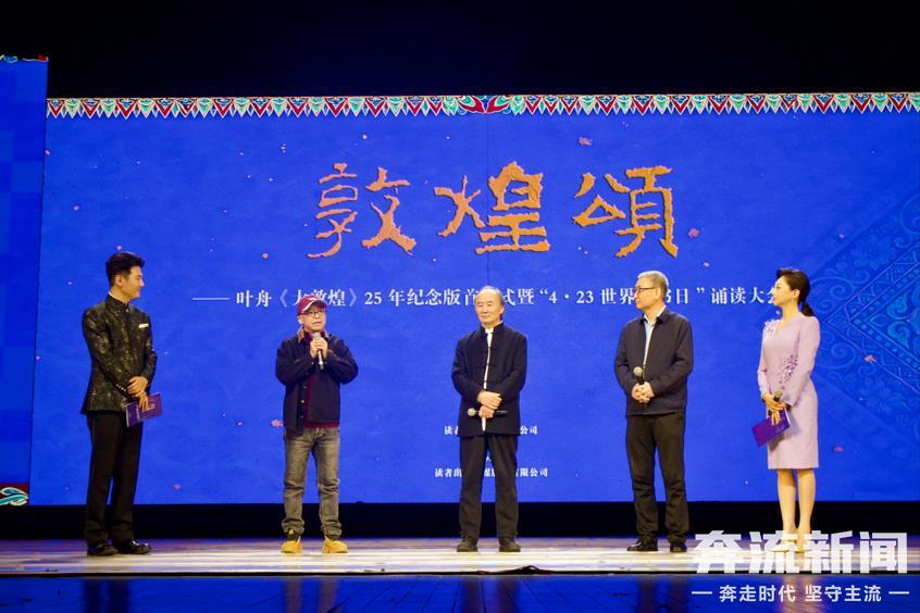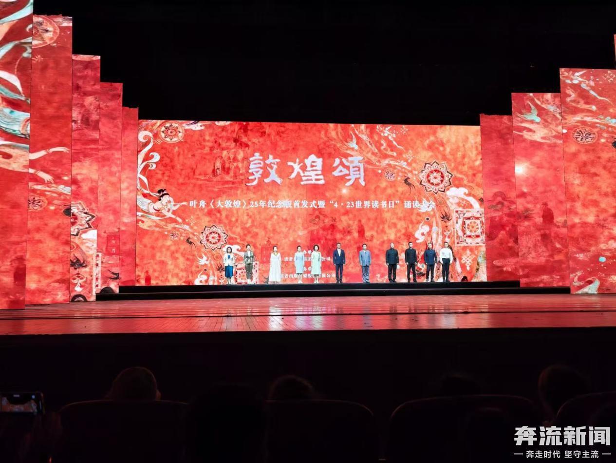 奔流新闻讯(首席记者 郑重)黄河之滨,读者之城,文化敦煌,诗韵流长。4月23日晚8时,在第31个“世界读书日”当天,由读者出版集团有限公司主办、读者出版传媒股份有限公司承办的“敦煌颂”——叶舟《大敦煌》25年纪念版首发式暨“4·23世界读书日”诵读大会在兰州音乐厅诗意启幕。