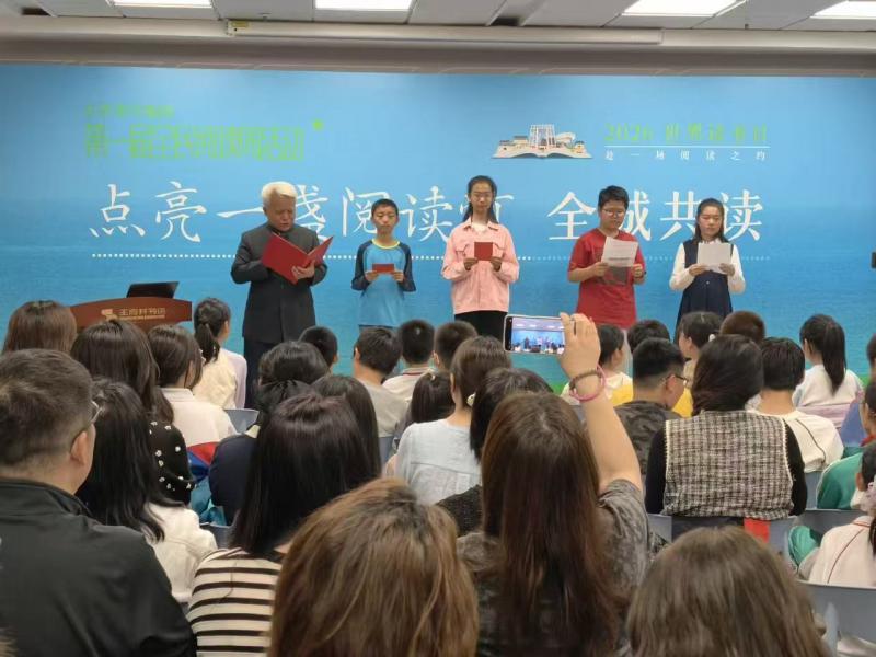 在主持人带领下,全场读者齐声诵读培根《论读书》、朱光潜《谈读书》、谢冕《读书人是幸福人》等精选的文学篇章。伴随着现场舒缓的轻音乐,读者的手机手电筒点点“星光”与琅琅书声交织,共同营造出沉浸式的阅读氛围。