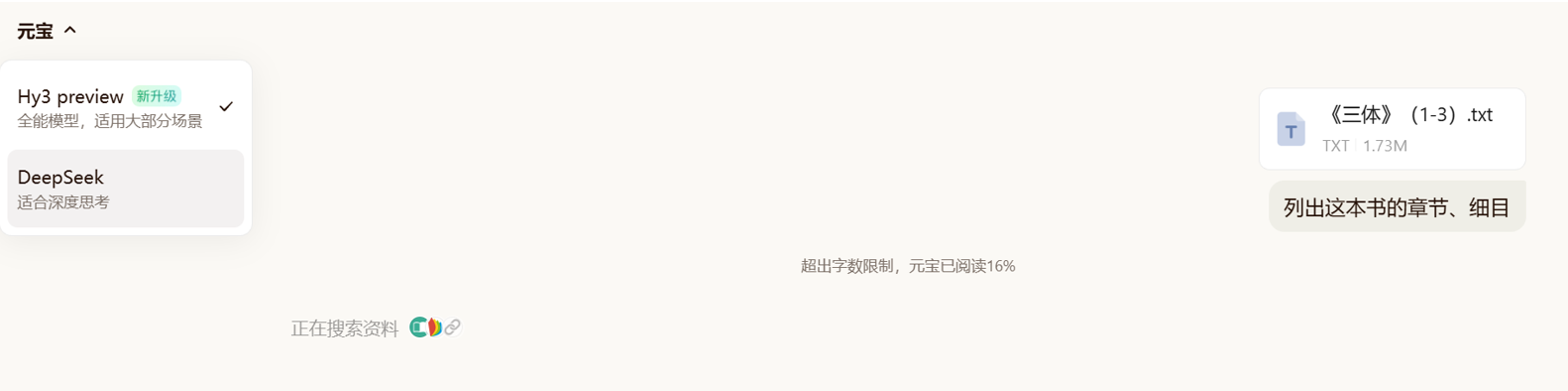 开机实验室同时也对豆包、元宝等模型进行实测,但这些模型暂时还无法阅读这么长的内容,需要搜网络资料才能给出答案。