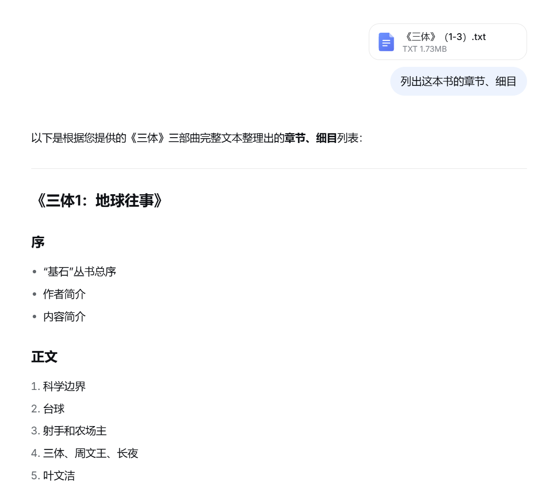 开机实验室尝试将近90万字的《三体》三部曲文本发送给DeepSeek解读,在快速模式下,DeepSeek可以阅读全文并给出正确的结论。
